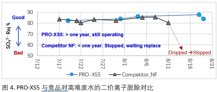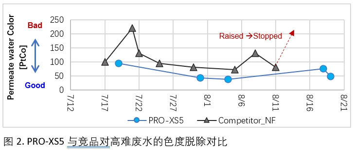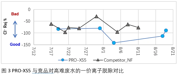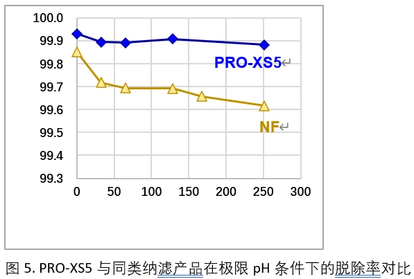 数据显示,PRO-XS5的脱色效果、氯离子透过率及使用寿命方面均优于同类NF产品。