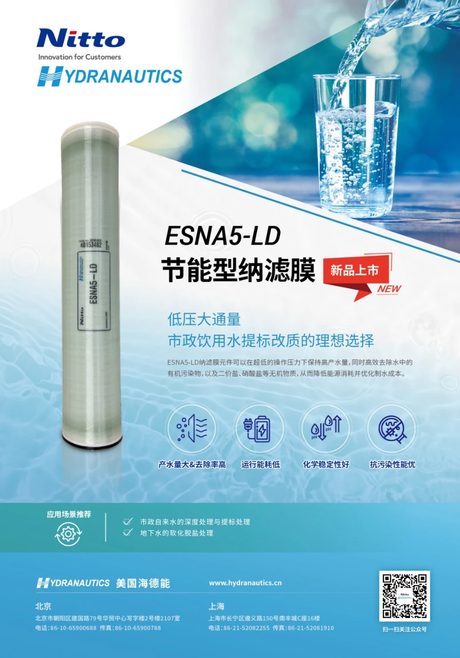 为保障国民饮用水安全,海德能™结合多年的膜片研发与应用经验,重磅推出新一代ESNA5-LD节能型纳滤膜。