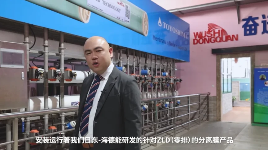 Nitto集团-美国海德能山代祐司副部长也在现场为我们深入讲解了膜技术在该零排放系统中的应用原理。不仅让我们对这套设备的运作机制有了更为清晰的认识,也让我们深刻感受到了膜技术在废水零排放和水资源再利用方面的巨大发展潜力和价值。