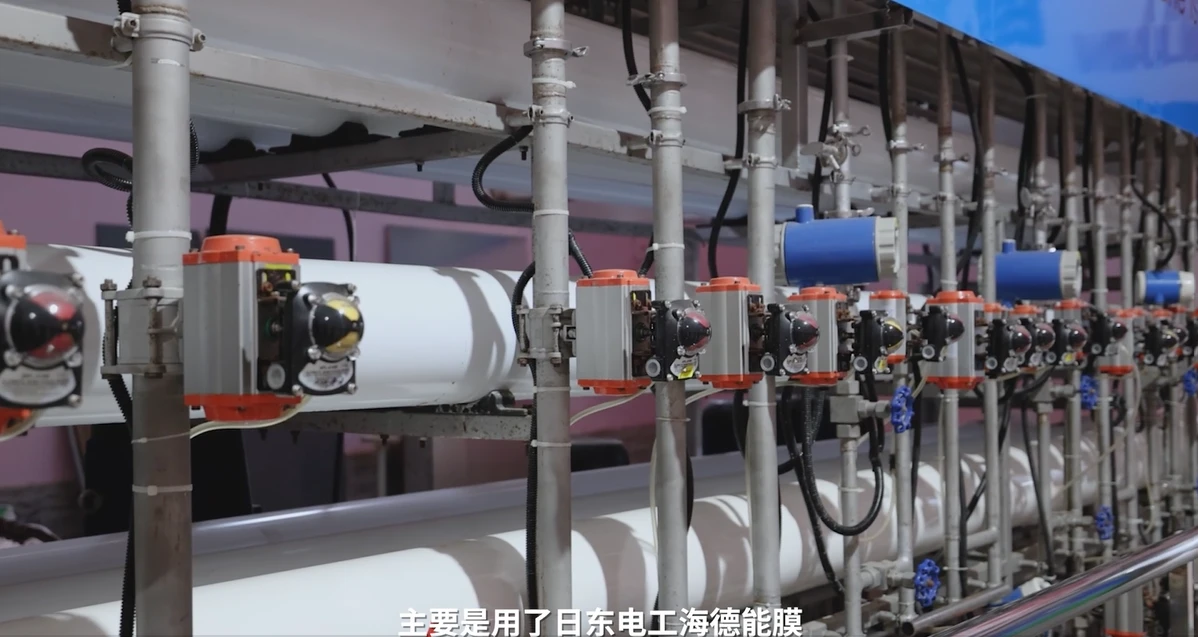经吴总介绍,我们得知这是吴氏印染厂第一台日处理500吨的零排放设备。该设备于2022年投入试用,首次试用不但解决了原来废水处理的巨大压力,还实现了95%的印染废水直接回用,极大地节省了企业的用水成本,再通过后续工艺,实现废盐的资源化利用,不仅解决了“危废”潜在的环境风险,还能产生效益,可谓一举多得。而之所以能达到这么高的回用率,是因为这套设备采用了海德能™的膜处理技术。
